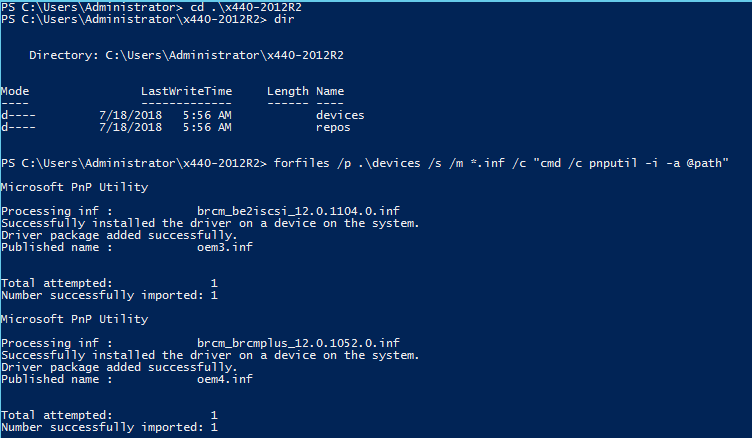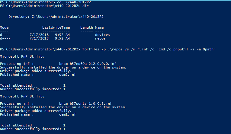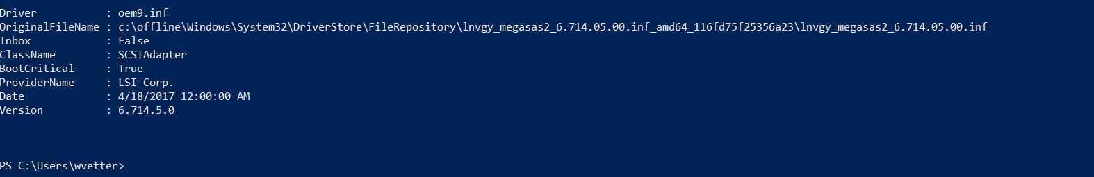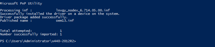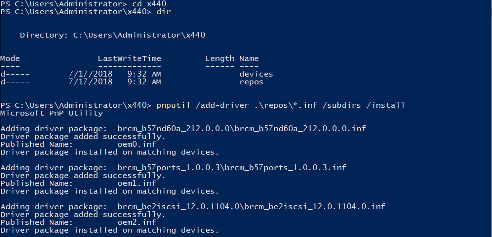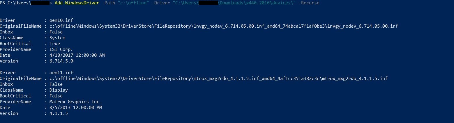 >Add-WindowsDriver -Path "c:\offline" -Driver "C:\Users\Builder\Downloads\x440-2016\devices\" -Recurse