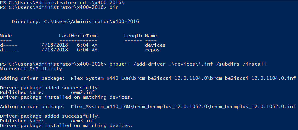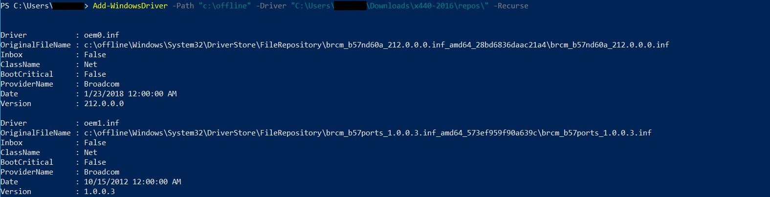 >Add-WindowsDriver -Path "c:\offline" -Driver "C:\Users\Builder\Downloads\x440-2016\repos\" -Recurse