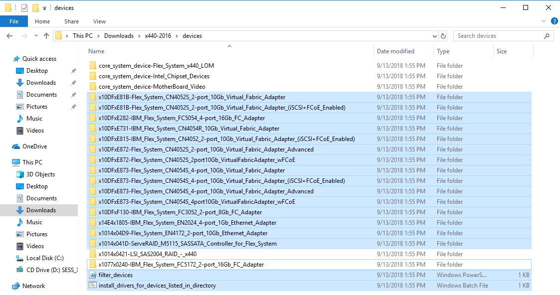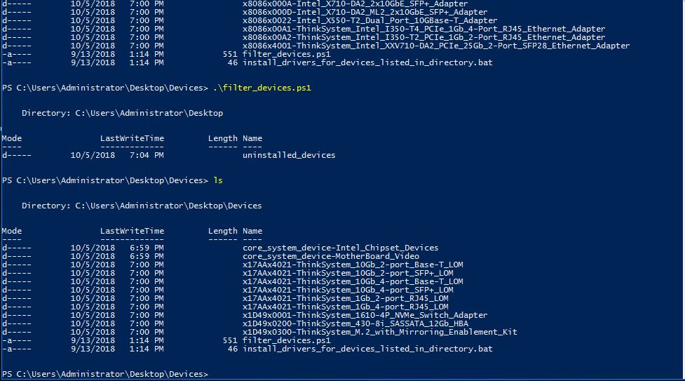 2. Then, use the PowerShell script filter_devices.ps1 to move the drivers not appicliable to the server out of the folder