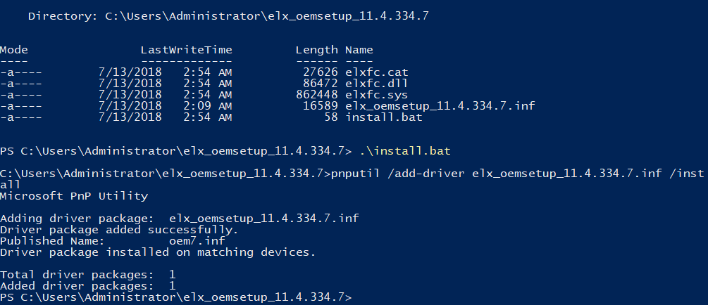 3. Install updated drivers using install.bat script (Process the same for all Microsoft Windows Server Versions)