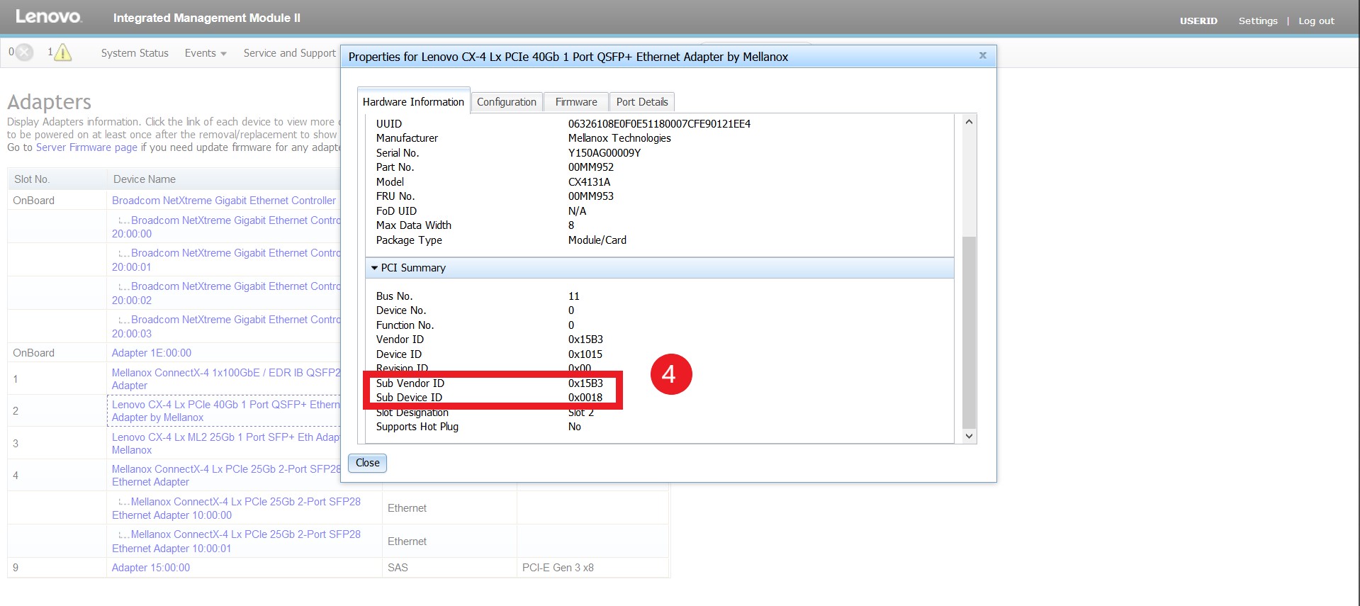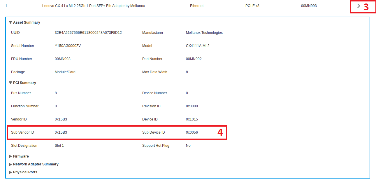 Select Specific PCI device (3) and retrieve Sub Vendor ID and Sub Device ID indentifers (4).