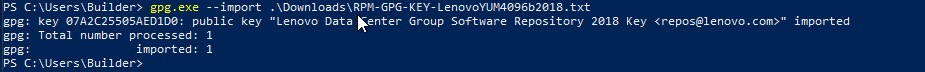 2. Download and import the Lenovo Data Center Group Public key into the GPG checking workstation or server. Each download within a single repository bundle uses the same Public Key. Lenovo changes the Public Key on a yearly basis.