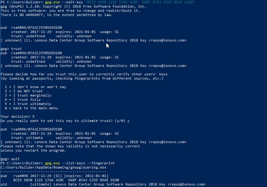 Each download from this Repository provides a GPG signature file to confirm the download's integrity and Lenovo's Authenticity.