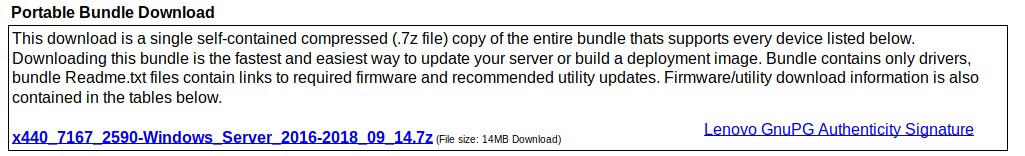 2. Select Lenovo Server/Microsoft Windows Server version configuration of interest. Near the top of the web page download the Portable bundle.