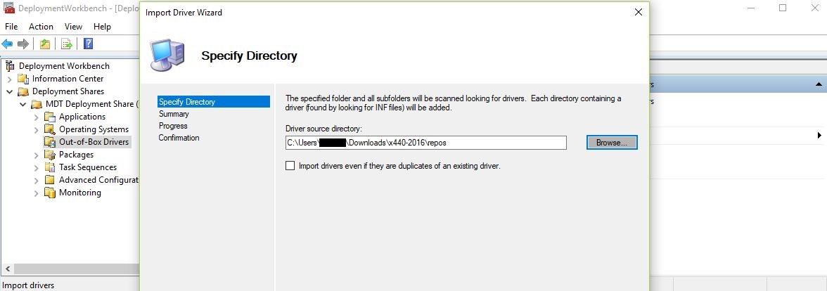 2. Using the Microsoft's Deployment Workbench, after creating a Deployment Share, select Out-of-Box Drivers, then select Import Drivers from Actions menu